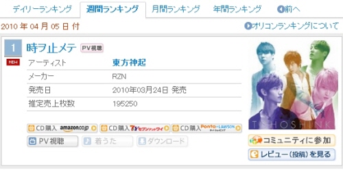 4月5日付オリコンチャートによれば東方新起は去る24日発売した30番目シングル‘トキオトメテ’(時ヲ止メテ)で発売初めての週主幹チャート1位に登板した。