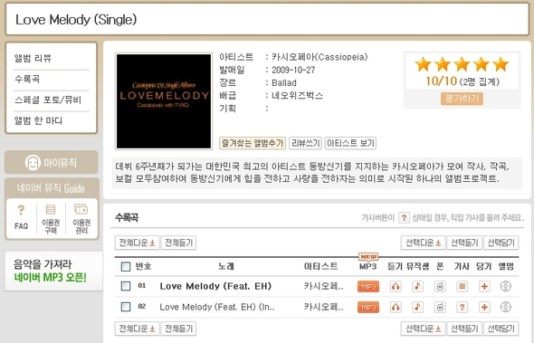 ファンたちが製作したこのアルバムの歌手名は東方新起のファンクラブ名と同じカシオペアに決定されたしタイトル曲‘ Love Melody’は叙情的なバラード曲で‘五個の星が私たちにささやいた話永遠でしょう,永遠です’という内容の歌詞で始める。