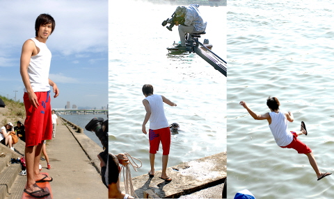 MBCの新水木ドラマ『地面にヘディング』で、主人公のボングンを演じるユンホ。このほど、ソウル市内を流れる漢江でおぼれるというシーンを撮影した。
