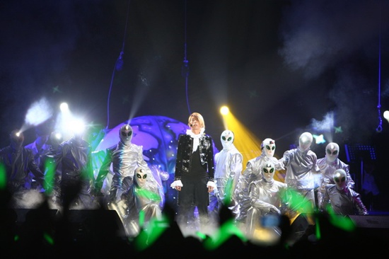 貴公子スタイルの服を着てあたかも宇宙どの星だったかきたような幻想的なオープニングを通じて舞台に上がったパク・ヒョシンは初めて曲で'Gift'を熱唱,観客らをひきつけた。