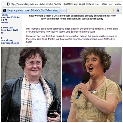 デイリーメールは 'ボイルが弟(妹)と一緒にビュティシャブに立ち寄って髪の毛を自然な茶色で染色して整えた'と伝えて '彼女は肌の赤い部分を無くす治療を受けたし彼女のトレードマークだった太い眉毛も整えていっそう女らしい外貌に様変りした'と伝えた.