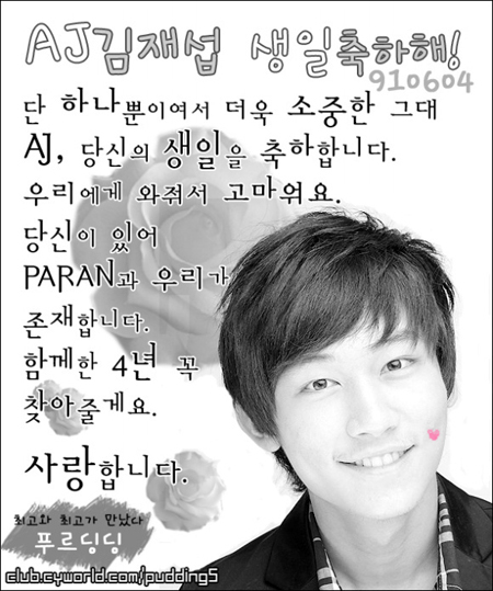 幸い去る6月1日自作劇でばれたがまだ非難は皆去らなくなっている。 これに波乱のファンたちはそのどの時より難しい時期を送っているAJとブルー時にユーザーたちのために誕生日祝い新聞広告を出した後一歩遅れてブルー時に(http:paran5.co.kr)に上げた。
