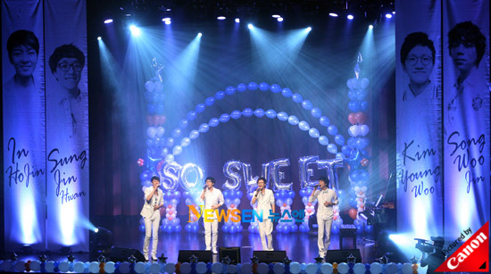 4人組男性ボーカルグループ スウィート・ソロウがデビュー5周年をむかえて8月21日午後4時ソウル、永登浦(ヨンドンポ)アートホールでファンミーティングを持った。