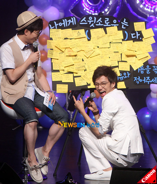 この日ファンミーティングは普段スウィート・ソロウ(隣好陣、ソン・ウジン、ソン・ジンファン、キム・ヨンウ)と親密なよしみを自慢するコメディアン パク・ソングァンが司会を担当した。 'テンテンクルロプ’ゲストで活動中の歌手ジョンヨプが特別な舞台をプレゼントした。