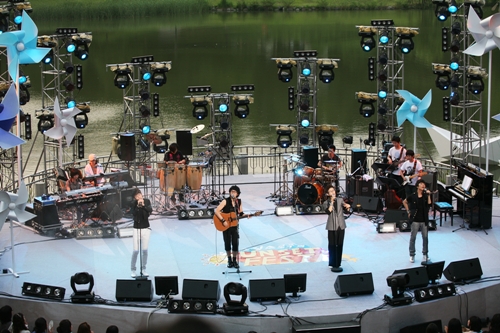 6月26日午後7時ソウル,芳夷洞(バンイドン),オリンピック公園88湖水辺舞台は男性4人組ボーカルグループ スウィート・ソロウの‘Sunset Festa 2009’初日公演‘歌聞こう’を楽しみに来た1千余観客らでガヤガヤ騒いだ。 ゲストなしでものさびしくスウィート・ソロウだけの舞台でだけ満たされたこの日公演は通常の時より征夷あふれる家族的な雰囲気の中で安楽で安らかな感じに進行された。