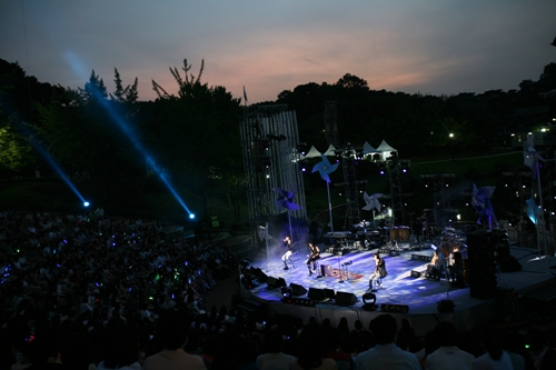 野外公演であるだけに客席との呼吸がとりわけ引き立って見えたこの日スウィート・ソロウのコンサートでソン・ウジン,隣好陣,キム・ヨンウ,ソン・ジンファン君のメンバーらは客席中間まで飛び込んで,観客らと目を合わせて尋常でない(?) コンサートの開始を知らせた。 これらは10年余り前作った曲を2009年バージョンで編曲してお目見えした‘思い通りに’と2.5集‘SONGS’収録曲‘So Cool’をひきつづきお目見えしてオープニングを装飾,序盤から観客らをひきつけた。