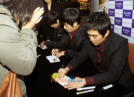 11月19日午後8時ソウル江南区(カンナムグ),三成洞(サムソンドン)コエックス エバン レコードでMBC週末ドラマ‘縁作り’タイトル曲を歌った3人組グループ V.O.S(パク・ジホン,チェ・ヒョンジュン,キム・ギョンロク)がファンサイン会を開いた。